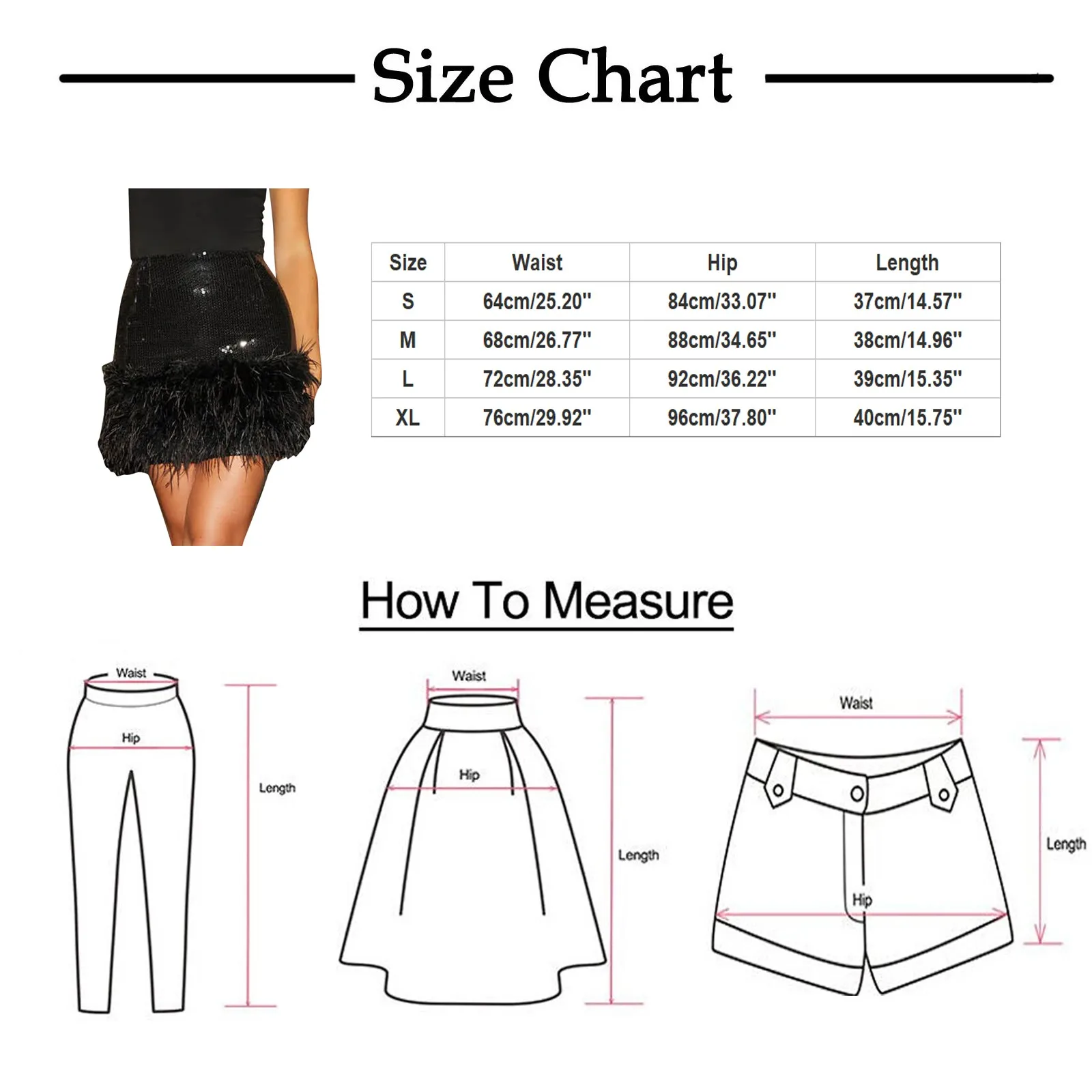 | Size:S | Waist:64cm/25.20'' | Hip:84cm/33.07'' | Length:37cm/14.57'' |