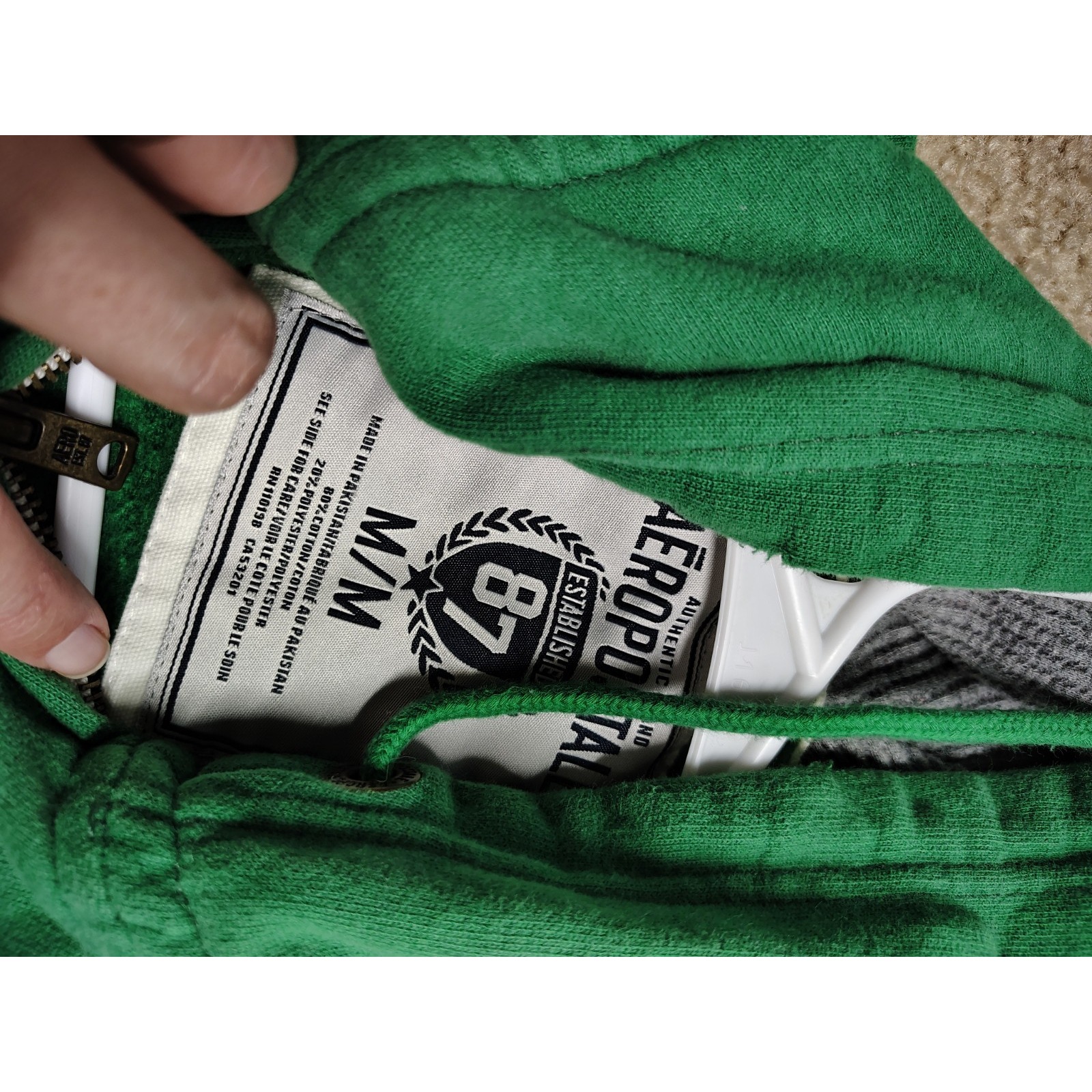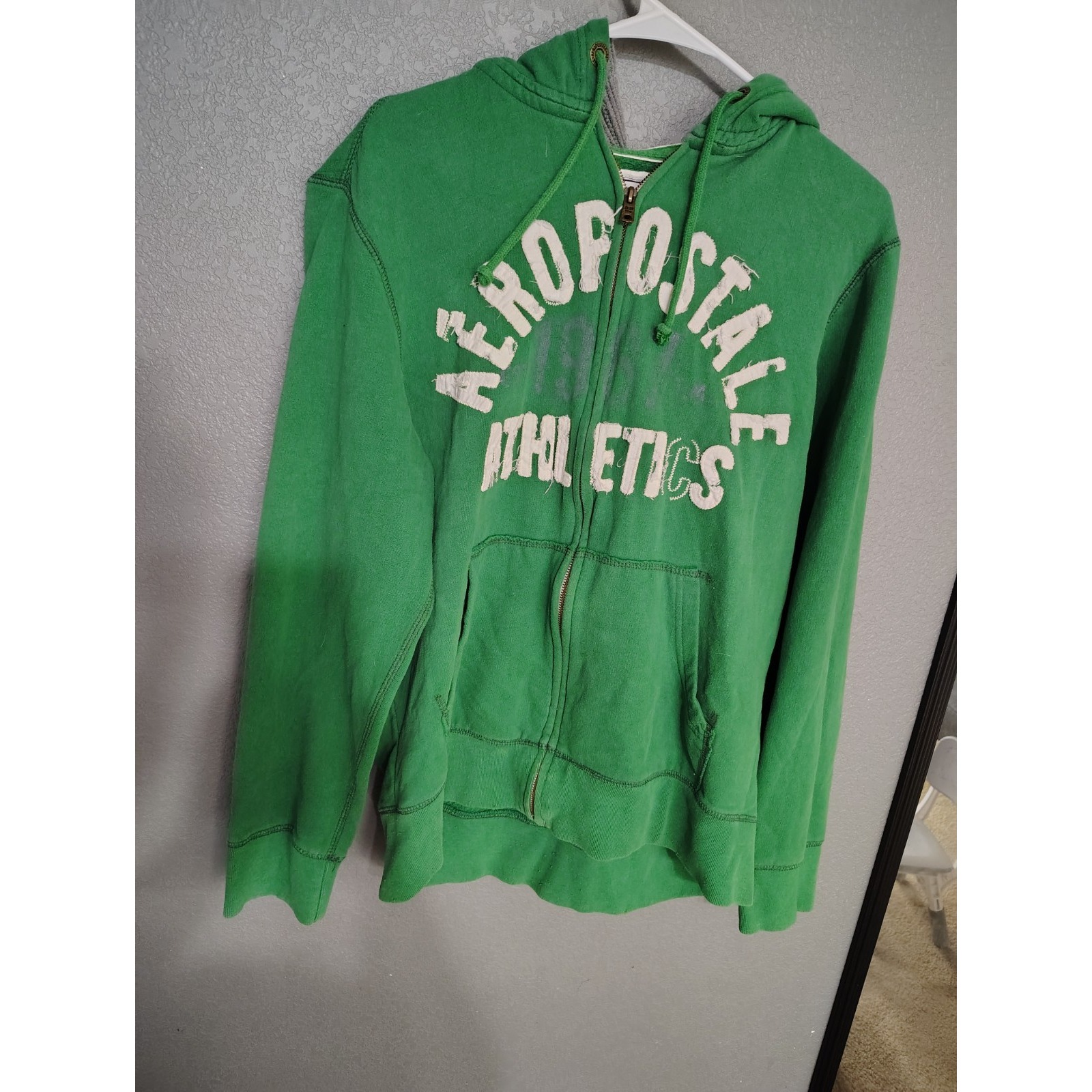 The Vintage Y2K Aeropostale Baggy Hoodie is a men's hoodie in size medium, featuring a vibrant green color with a distressed look. This full zip hoodie with a regular fit is part of the Aeropostale brand, known for its casual and trendy designs. Perfect for those who appreciate vintage fashion from the late 90s and early 2000s, this hoodie combines comfort and style effortlessly. Ideal for any man looking to add a unique and nostalgic piece to their activewear collection.